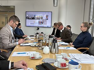 Im Anschluss begrüßte der Ausschuss Markus Töns, europapolitischer Sprecher der SPD-Bundestagsfraktion. In seiner Einführung ging Till Blässinger auf aktuelle europapolitische Entwicklungen ein. Mit den Omnibus-Paketen zeichne sich erstmals eine gewisse Bewegung beim Bürokratieabbau auf EU-Ebene ab, auch wenn der Umfang bislang begrenzt sei. Gleichzeitig sei Deutschland auf europäischer Ebene wieder sichtbarer und bringe Positionen stärker ein. Diese Rolle müsse nun genutzt werden, um Wettbewerbsfähigkeit und Wachstum in den Mittelpunkt zu stellen. Markus Töns gab dazu einen Überblick über die aktuellen europapolitischen Vorhaben und die Schwerpunkte seiner Fraktion.