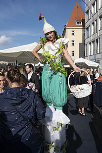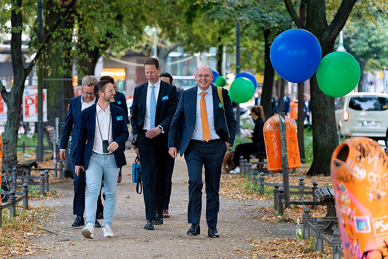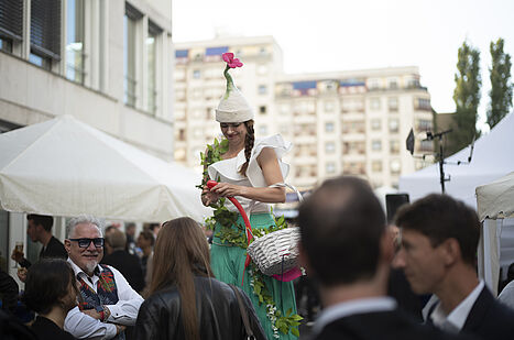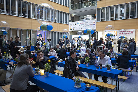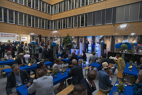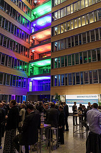 Unter dem Motto "Starker Handel, starke Gesellschaft" zeigten Aussteller und Sponsoren aus Außenhandel, Großhandel und Einzelhandel die Vielfalt ihrer Wirtschaftsstufe. Die vielen Gäste genossen das überraschend trockene Wetter im Außenbereich oder tanzten zur Musik im Atrium.