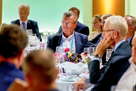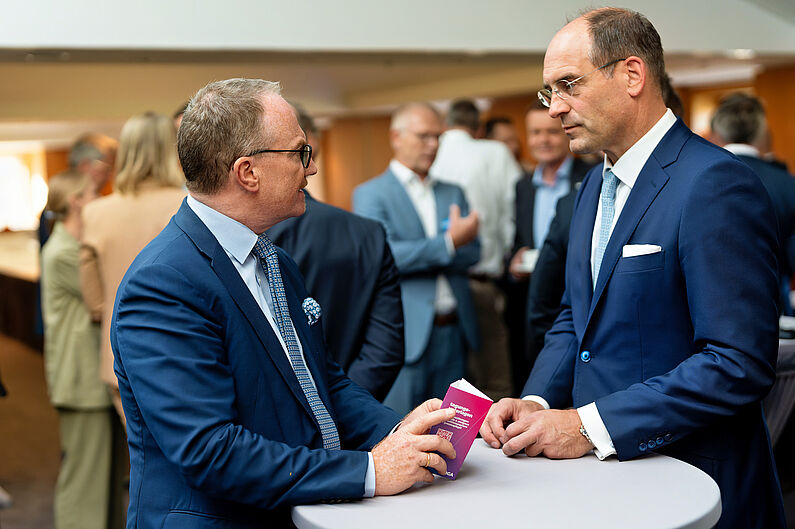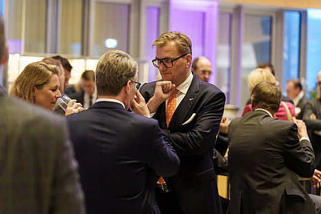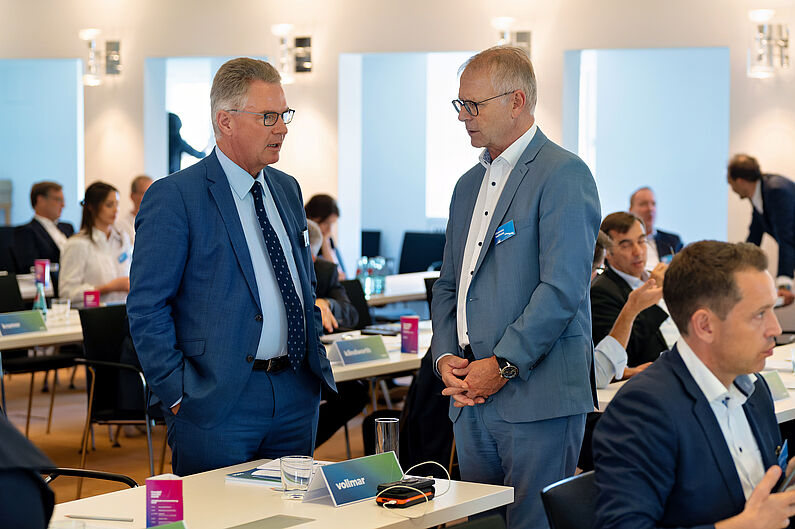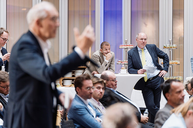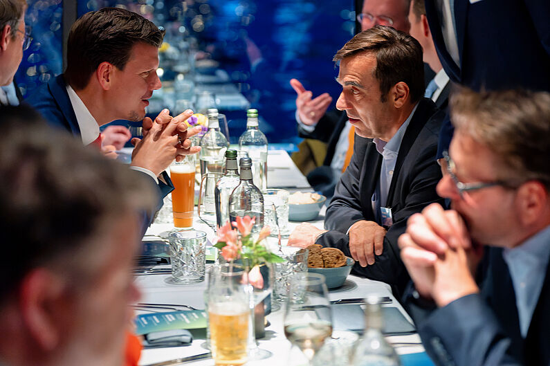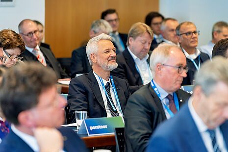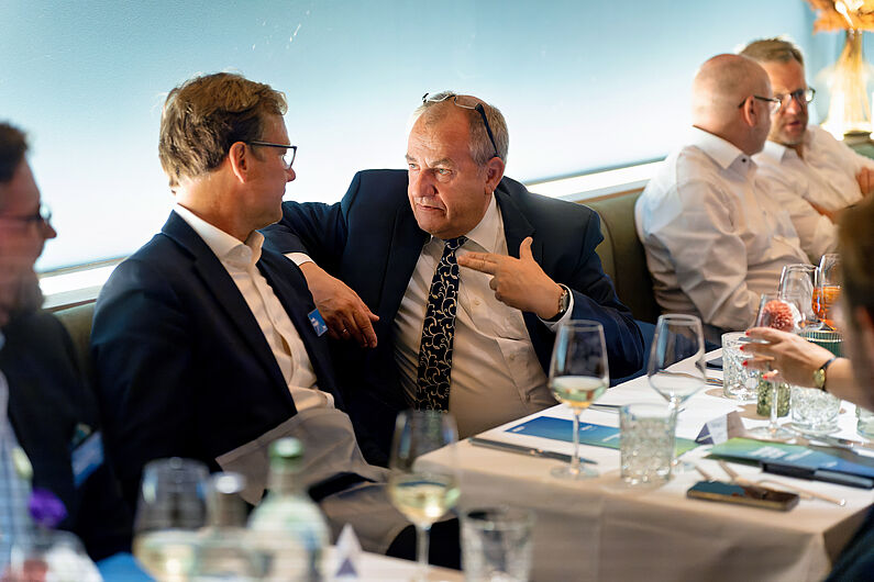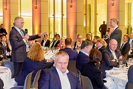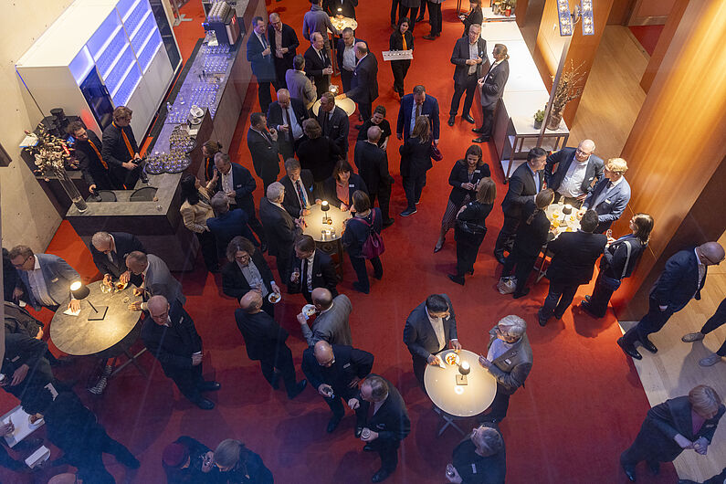 Bei intensiven Beratungen tauschten sich die vielen Gäste mit Präsident Dr. Dirk Jandura über die aktuelle wirtschaftliche Lage und die Zukunftsaussichten der Wirtschaftsstufe aus. Auch Ökonom Prof. Lars Feld gab einen wissenschaftlichen Einblick in die derzeitige Situation des Wirtschaftsstandortes Deutschland.