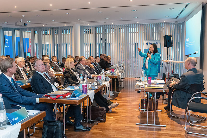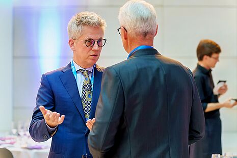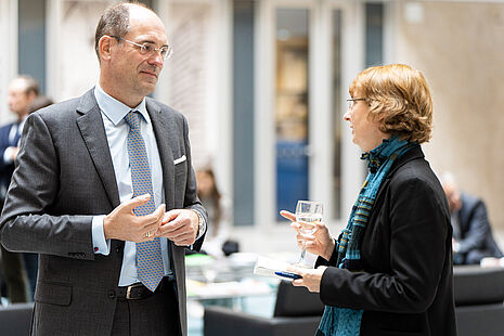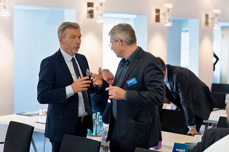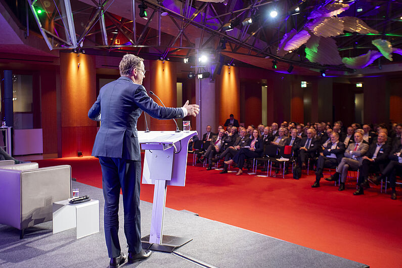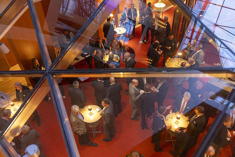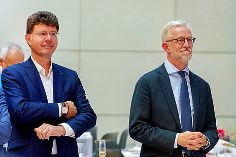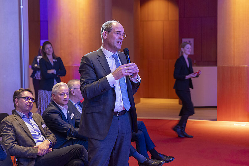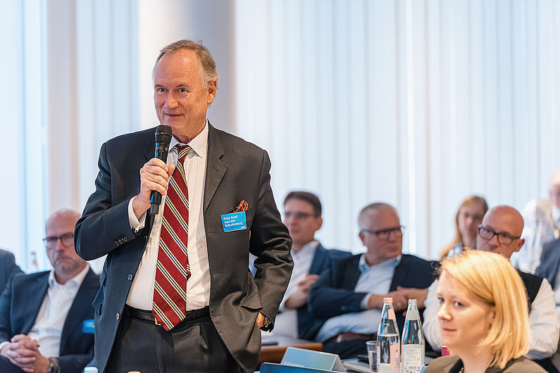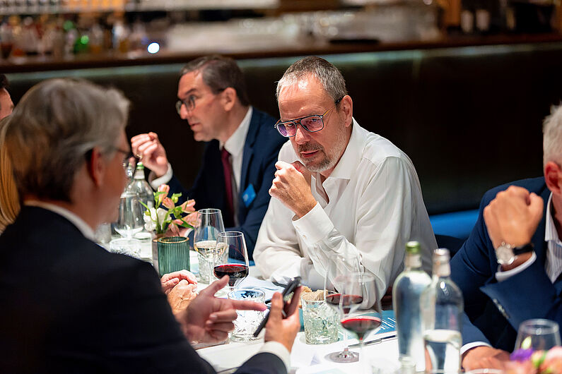 Bei intensiven Beratungen tauschten sich die vielen Gäste mit Präsident Dr. Dirk Jandura über die aktuelle wirtschaftliche Lage und die Zukunftsaussichten der Wirtschaftsstufe aus. Auch Ökonom Prof. Lars Feld gab einen wissenschaftlichen Einblick in die derzeitige Situation des Wirtschaftsstandortes Deutschland.