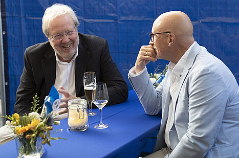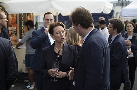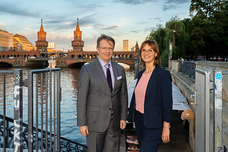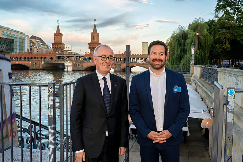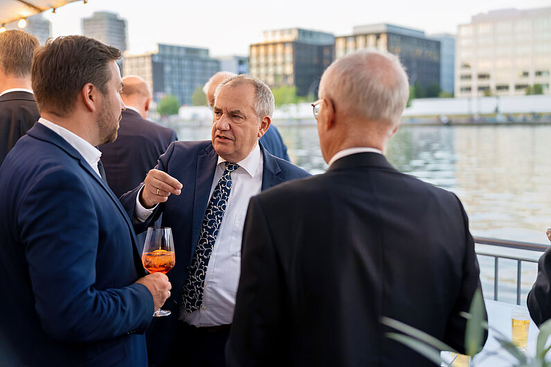 Bei einer anschließenden Abendveranstaltung direkt an der Spree genossen die Gäste das spätsommerliche Wetter und ließen den Abend mit leckerem Essen, guten Gesprächen und einigen Drinks mit Blick auf die Oberbaumbrücke ausklingen.