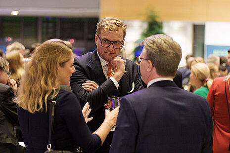 Beim Parlamentarischen Abend der AG Mittelstand konnten die anwesenden Gäste den Generalsekretär der CDU Deutschlands, Dr. Carsten Linnemann, sowie den Parlamentarischen Staatssekretär und Mittelstandsbeauftragten Michael Kellner begrüßen. Nach einer intensiven Diskussion über den Standort Deutschland tauschten sich die Gäste bei Getränken und Essen weiter aus.